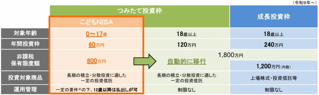 | 非課税期間 | 各年の買付分について最長5年間 | 無制限(18歳以降は新NISA口座に自動移行) |